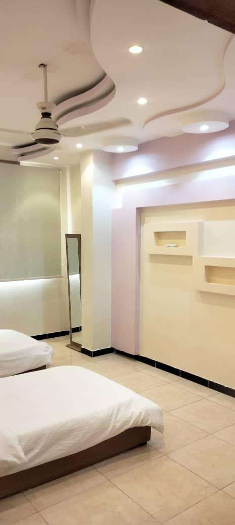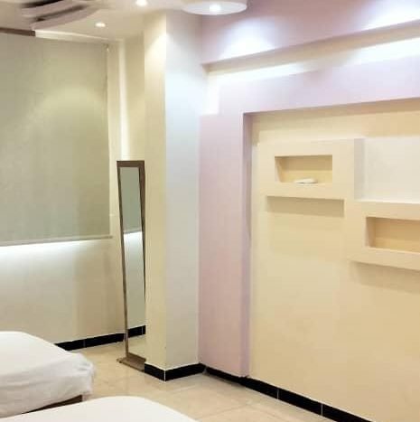 The rosha is located on the first floor above commercial shops and includes two bedrooms, a separate diwan, a spacious living hall, a modern kitchen, and two bathrooms. The unit features modern interior design and luxury furnishings. Commercial electricity is available, along with a 24-hour power system.